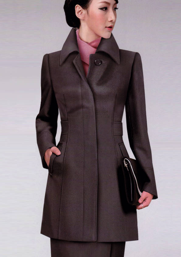 女式大衣約于19世紀末出現(xiàn),是在女式羊毛長外衣的基礎(chǔ)上發(fā)展而成,衣身較長,大翻領(lǐng),收腰式,大多以羊毛、羊絨作面料首選。女式大衣一般隨流行趨勢而不斷變換式樣,無固定格局,如有的采用多塊衣片組合成衣身,有的下擺呈波浪形,有的還配以腰帶等附件。修身大衣具有較好的瘦身效果。中長款大衣,收腰的設(shè)計會讓下半身顯得更修長。富有精品感的大衣,既可以穿得運動、休閑,也可搭配正裝出席正式場合;如果搭短裙、短褲也一樣非常時尚摩登。