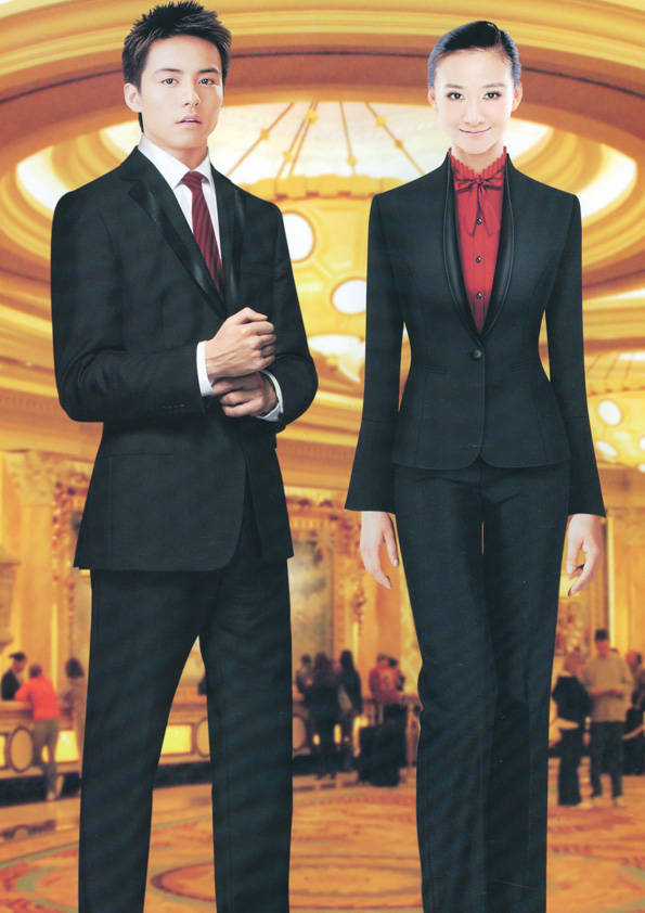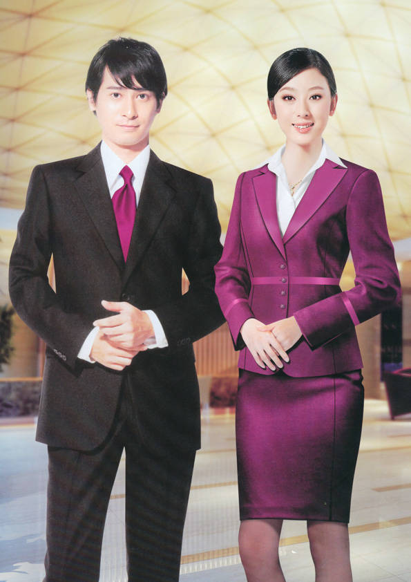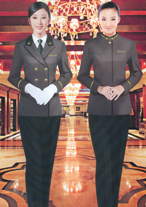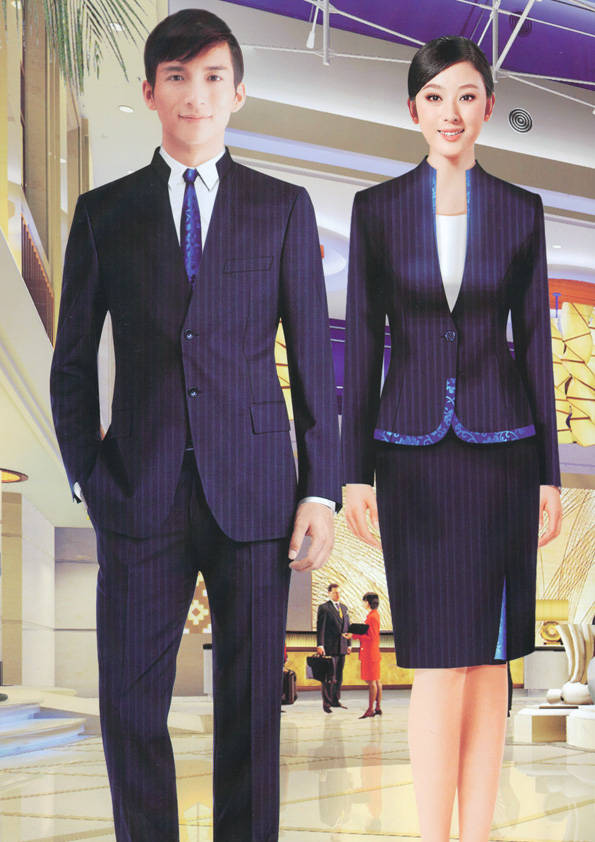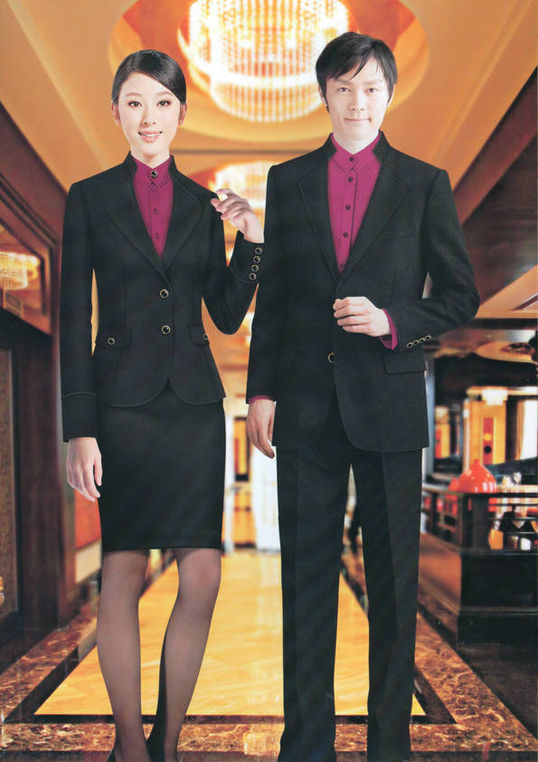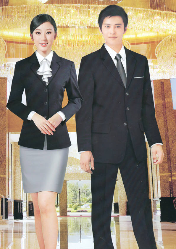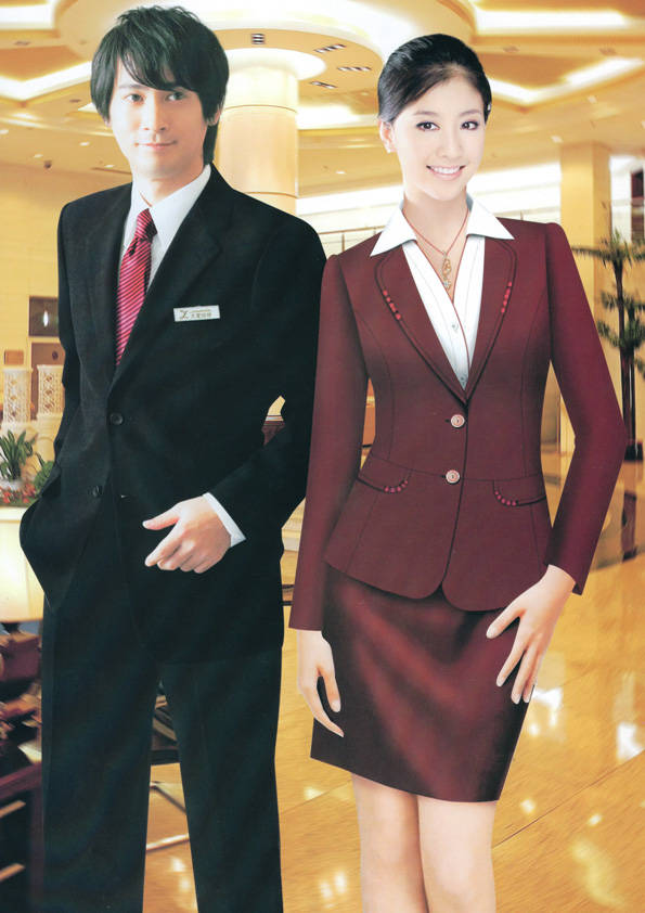 前廳部是酒店的神經中樞也叫做前臺,在客人心目中它是酒店管理機構的代表。客人入住登記在前廳、離店結算在前廳,客人遇到困難尋求幫助找前廳,客人感到不滿時投訴也找前廳。 前廳工作人員的言語舉止將會給客人留下深刻的第一印象,最初的印象極為重要。所以前廳服裝也極為重要。前廳服裝應該注意以下幾個問題。1、服裝的色彩與酒店裝修相搭配。2、服裝的面料選定。3、服裝的款式一定要舒適,時尚大方。4、服裝的樣式與酒店風格相搭配。5、服裝要成系列感。