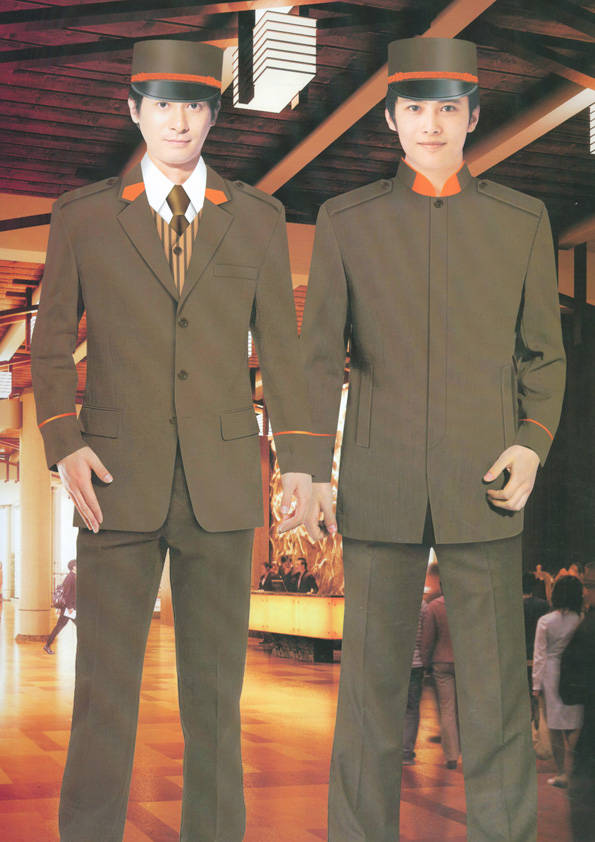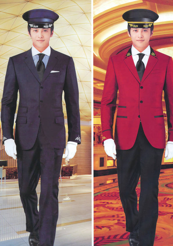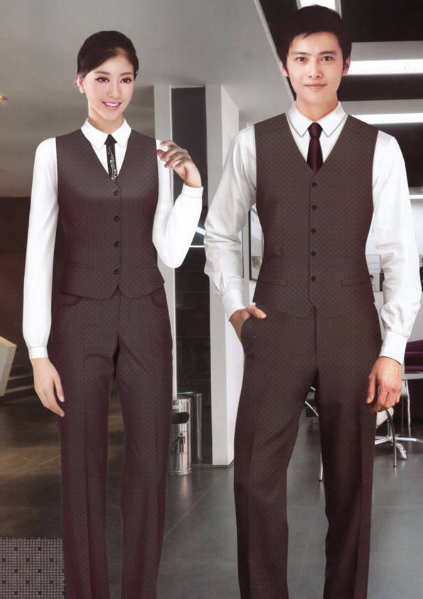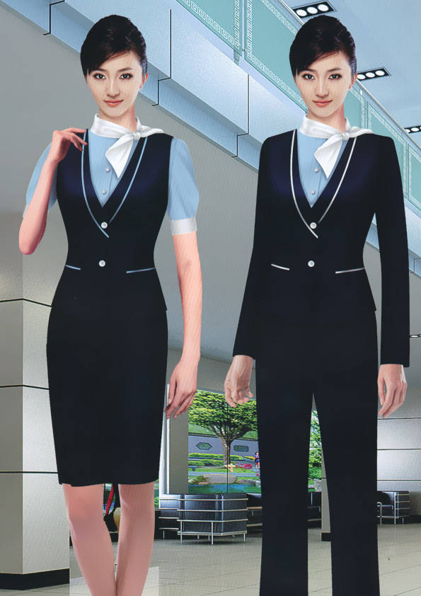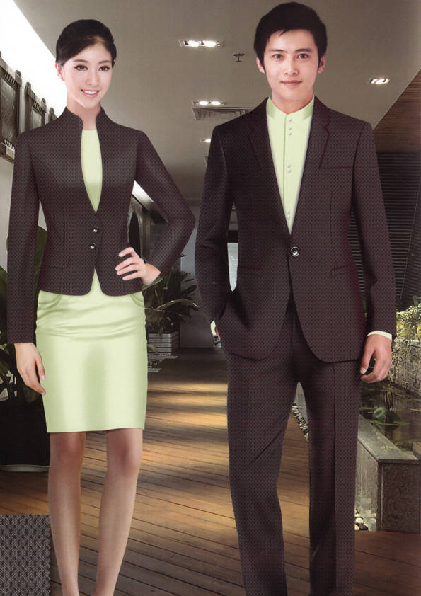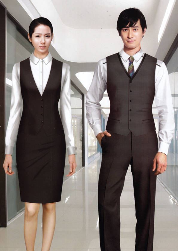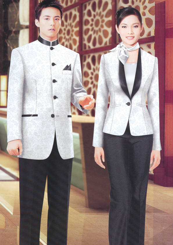 前廳部是酒店的神經中樞也叫做前臺,在客人心目中它是酒店管理機構的代表。客人入住登記在前廳、離店結算在前廳,客人遇到困難尋求幫助找前廳,客人感到不滿時投訴也找前廳。 前廳工作人員的言語舉止將會給客人留下深刻的第一印象,最初的印象極為重要。所以前廳服裝也極為重要。前廳服裝應該注意以下幾個問題。1、服裝的色彩與酒店裝修相搭配。2、服裝的面料選定。3、服裝的款式一定要舒適,時尚大方。4、服裝的樣式與酒店風格相搭配。5、服裝要成系列感。