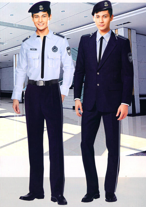 保安員服裝分為:春秋冬常服、執勤服、押運服、訓練服、長短袖襯衣、夏褲、女裙、棉服等。帽子分為:大檐帽、卷檐帽、工作帽、貝雷帽、棉帽等。鞋分為:單皮鞋、棉皮鞋、押運員高筒皮靴、女保安員高筒皮靴、訓練用鞋等。配飾標志為:帽徽、肩章、臂章、保安從業單位標志號牌、專用鈕扣、專用腰帶扣、領帶、領帶夾等。在治安環境越來越好的今天,“保安”這一崗位不再是單一的崗位了,現在越來越多的企業、單位把“保安”的崗位用途增強了,不僅僅只是用來擔任安保工作,更是用來做為一個體現形象及服務的崗位,所以現在有部份企業、單位的保安服裝也越來越時尚、簡潔、大方了,往那里一站猶如一道風景!